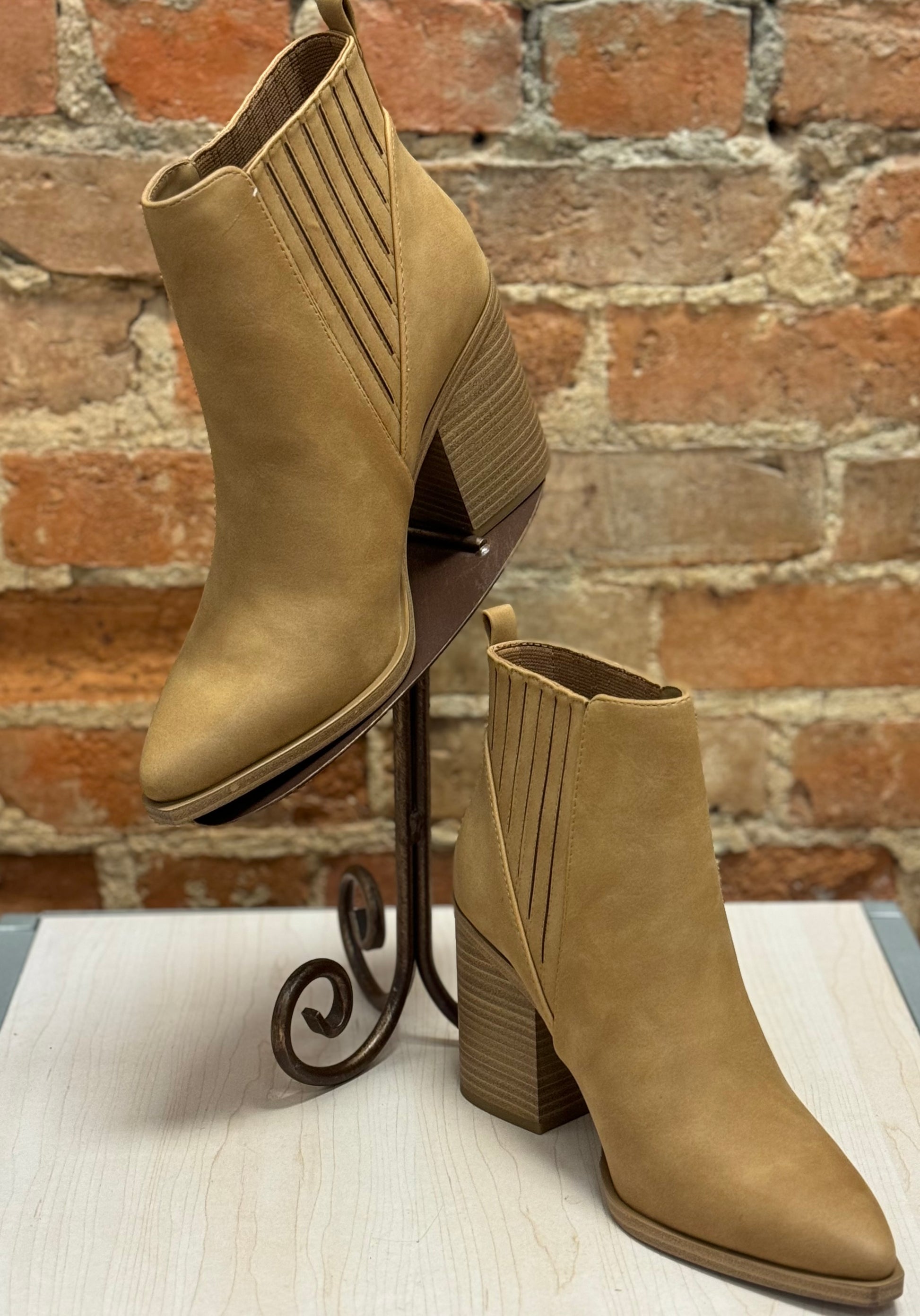Coffee Latte Ankle boot with a heel.