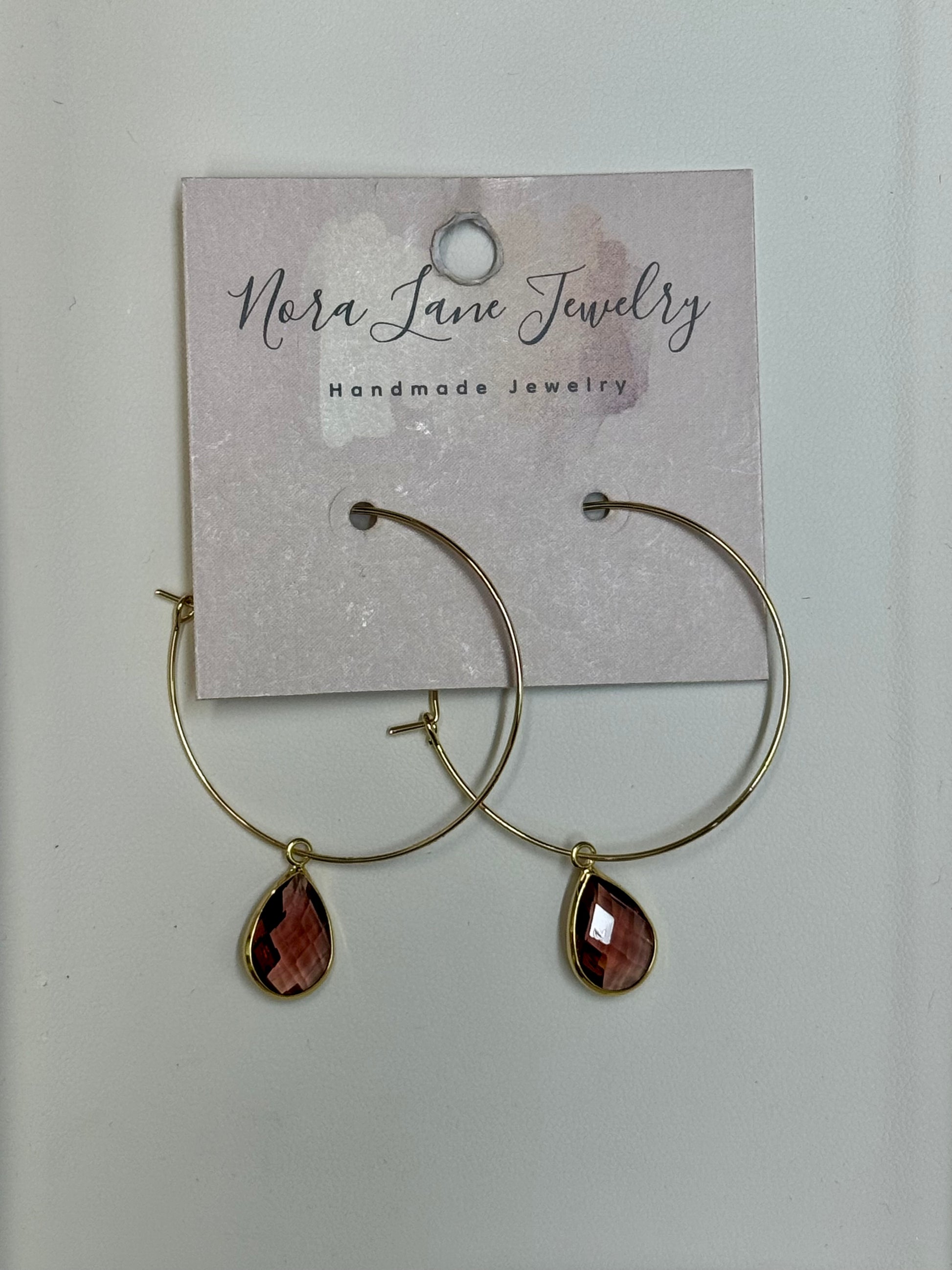 Elegant and eye, catching the Amethyst Hoopsfeature faceted teardrop crystals in a rich purple hue, framed in gold and suspended from sleek hoops. Lightweight and versatile, they add a touch of color and sophistication - perfect for both everyday wear and special occasions.