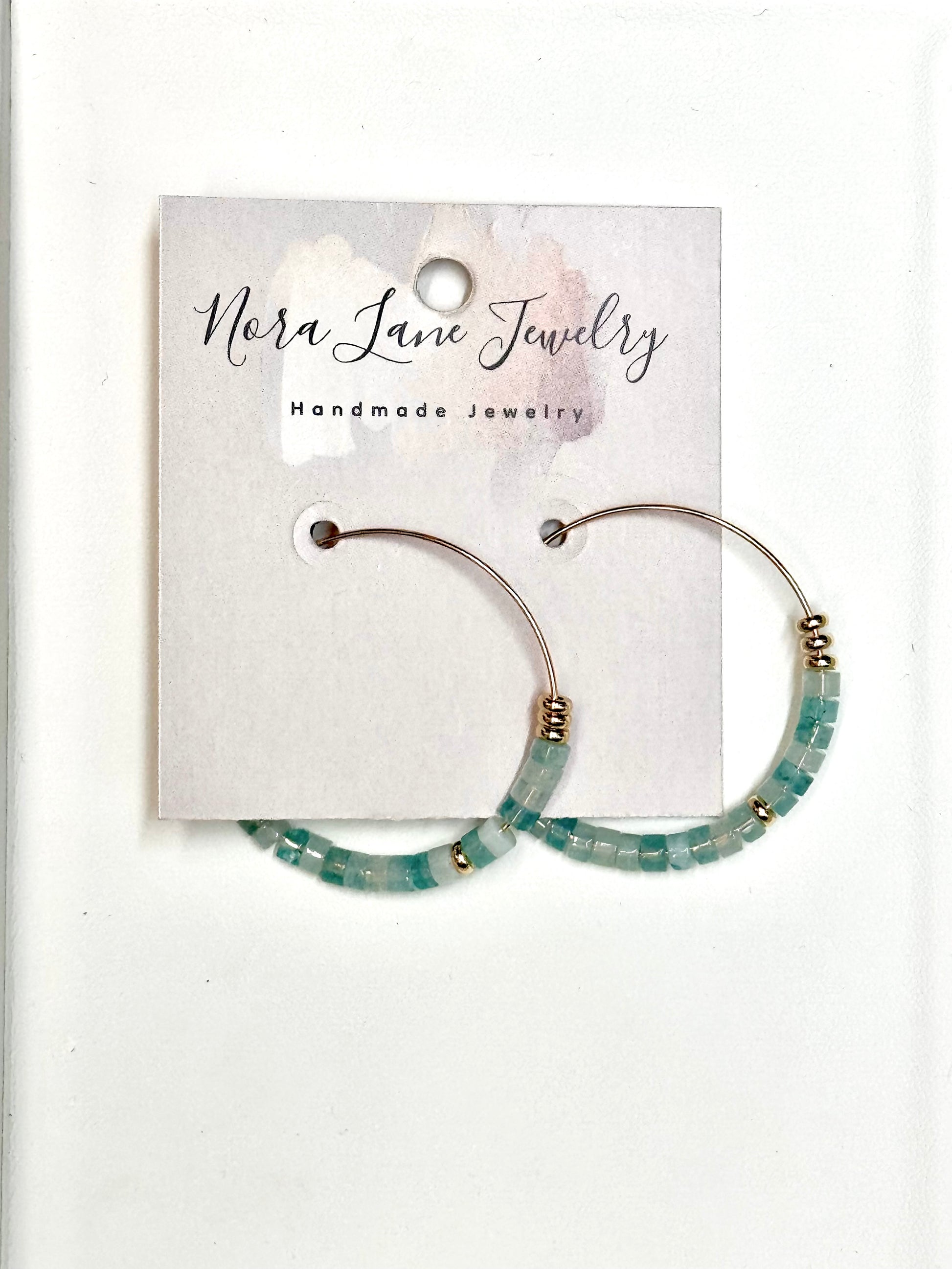 Handmade hoops with earthy greens and goat accents for every day chic.